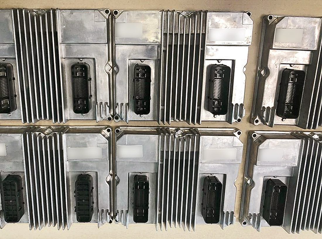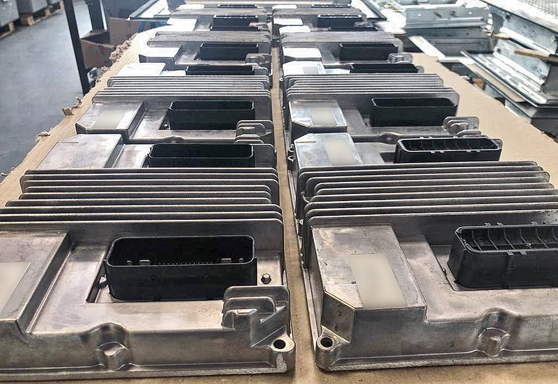 Mit Trockeneisstrahlen gereinigte Steuergeräte