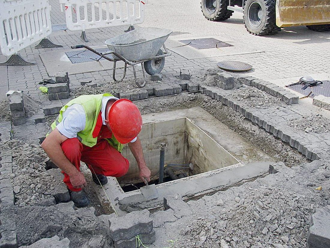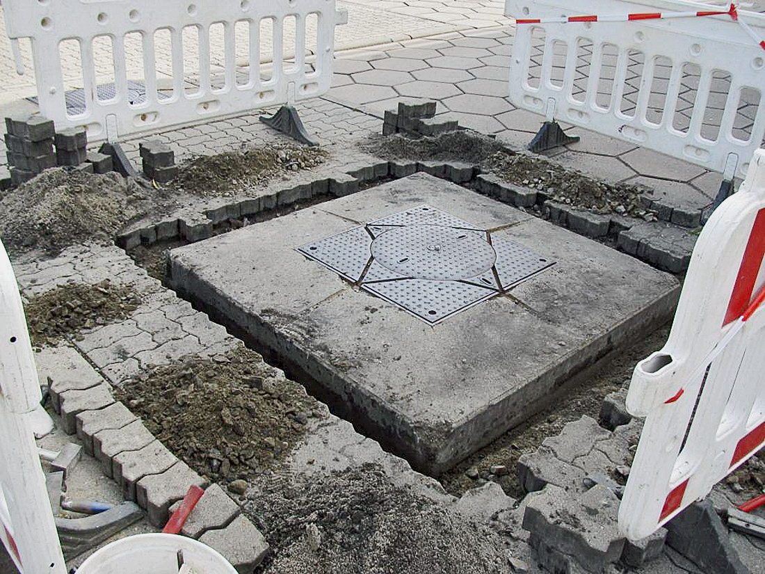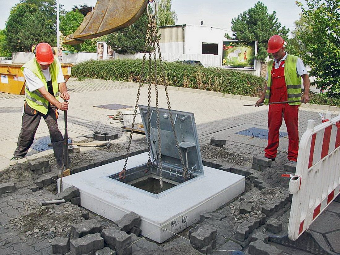 Complete exchange of a shaft cover with concrete collar.